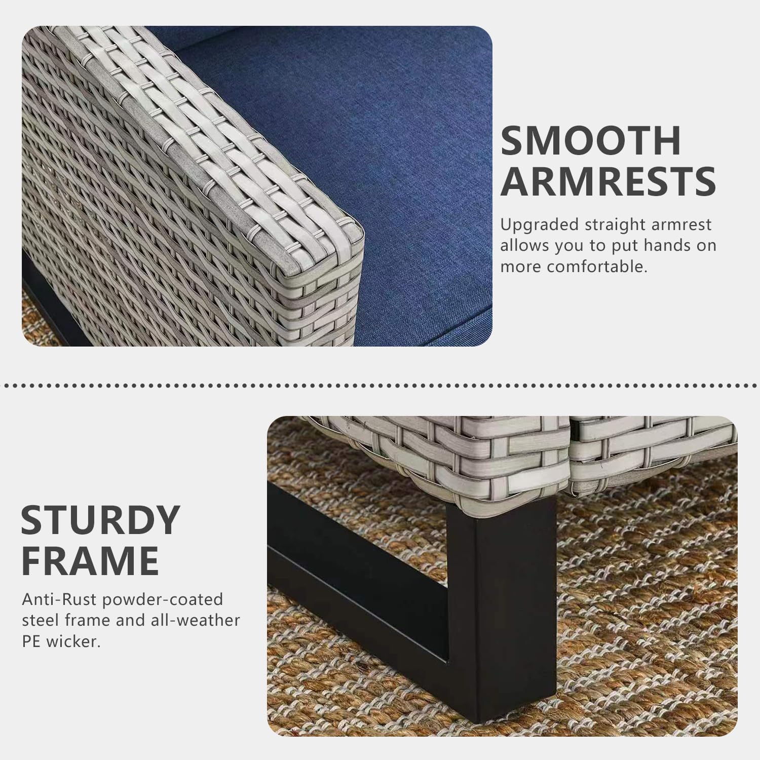- 【Upgrated Elegant Design Sturdy&Durable】All made with Anti-Rust powder-coated steel frame and All-weather Hand-Woven PE wicker to make this patio furniture set is resistant to UV and weather,The patio conversation sets is totally upgraded with straight armrest and the heightened ergonomically curved backrest.